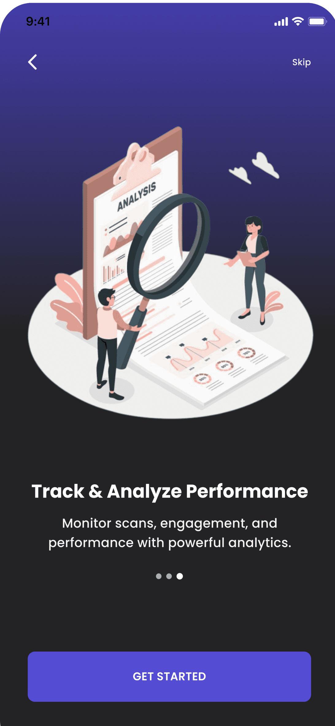 Track total scans, unique users, and live trends instantly.